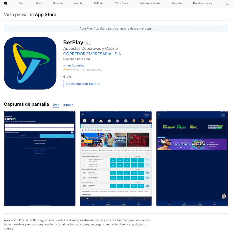 Por supuesto, el servicio de Betplay apuestas en vivo está incluido en sus aplicaciones móviles, así como en la versión para celulares de su web.