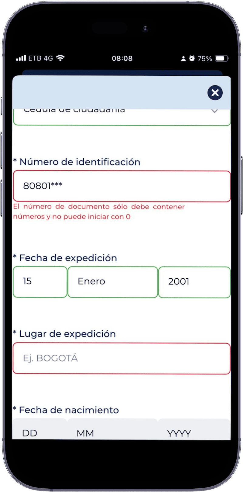 Introduce el número de tu cédula de ciudadanía y selecciona la fecha de expedición correspondiente. No confundir esta fecha con la fecha de nacimiento u otros datos. La fecha de expedición es la que aparece en la parte posterior del documento. Tu nombre de usuario será tu número de cédula. Recuerda que para hacer el registro en esta página, debes ser residente legal en Colombia.